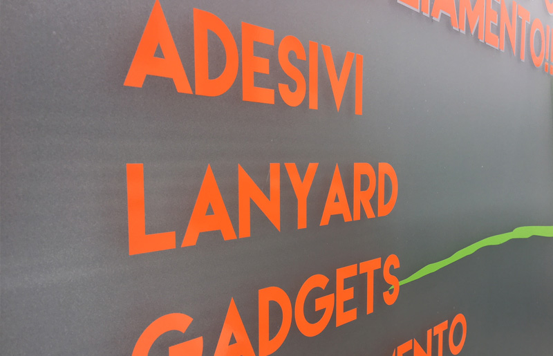 Realizzazione del logo tramite pellicole intagliate precolorate o stampate, non necessita di nessun impianto stampa.