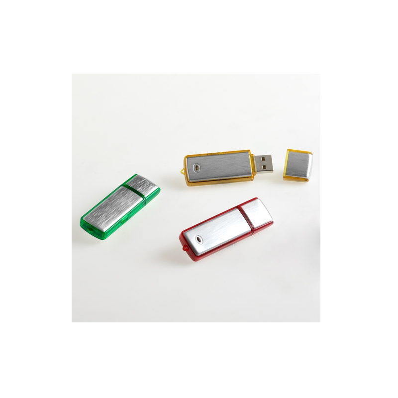 Chiave USB in materiale plastico e alluminio, caratterizzata da una forma ovale dalle dimensioni standard. Dotata di un piccolo anello sporgente su un lato, funzionale al passaggio degli accessori. Un led lampeggiante indica il suo funzionamento. Personalizzabile su entrambi i lati in serigrafia o laser.