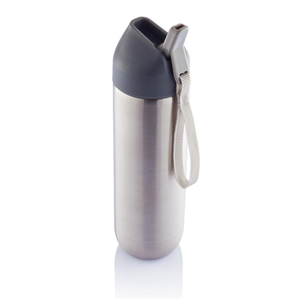La bottiglia Neva è un'alternativa al consumo di acqua senza utilizzare bottiglie di plastica. Può essere utilizzata per un lunghissimo periodo grazie all'acciaio 304 di cui è costituita. Capacità 500 ml. Il cordino ti permette di trasportarla e di aprire il beccuccio con facilità. Design registrato®.