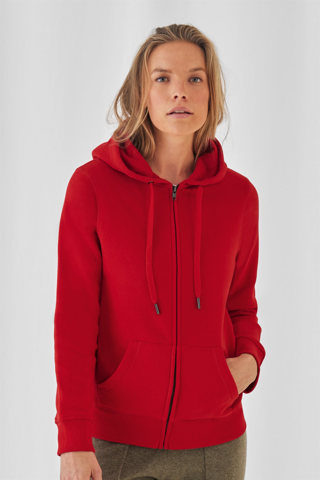 80% Cotone ring-spun pettinato, preristretto, 20% Poliestere. Felpa di alta qualità, con cappuccio foderato in jersey e zip, cordoncini piatti con eleganti punte di metallo, struttura con cuciture laterali, nastro parasudore resistente, mezzaluna in single Jersey sulla schiena per un look premium e una maggiore durata nel tempo. Tessuto PST, felpata internamente, esterno 100% cotone pettinato.
