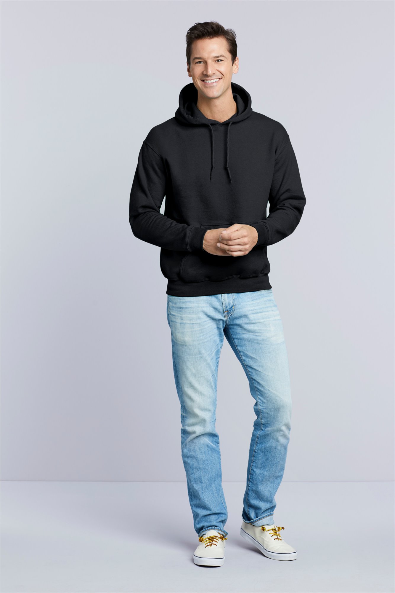 50% Cotone / 50% Poliestere DryBlend®. Cappuccio foderato con cordoncino. Maniche set-in. Tasca a marsupio con impunture. Tubolare.