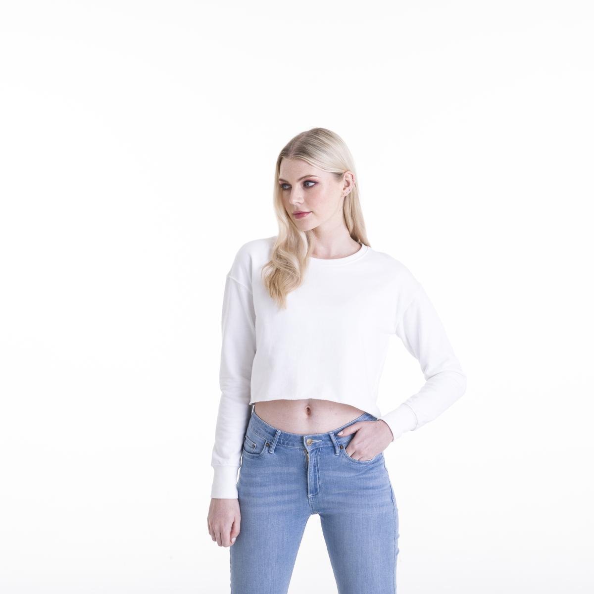80% cotone Ringspun, 20% poliestere. Felpa girlie dal taglio rilassato, scollo rotondo, taglio corto con design a spalla cadente. Cuciture a doppio ago, orlo a taglio vivo con cuciture a vista, interno in pile spazzolato, polsini e orlo a costine. Il morbido rivestimento in cotone crea una superficie di stampa ideale, la semplice etichetta a strappo lo rende perfetto per il rebranding.