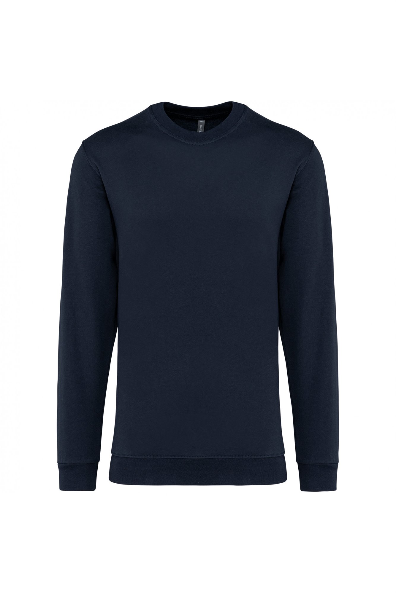 80% cotone / 20% poliestere. Felpa garzata. Maniche a giro. Collo, fondo manica e fondo capo a costine.