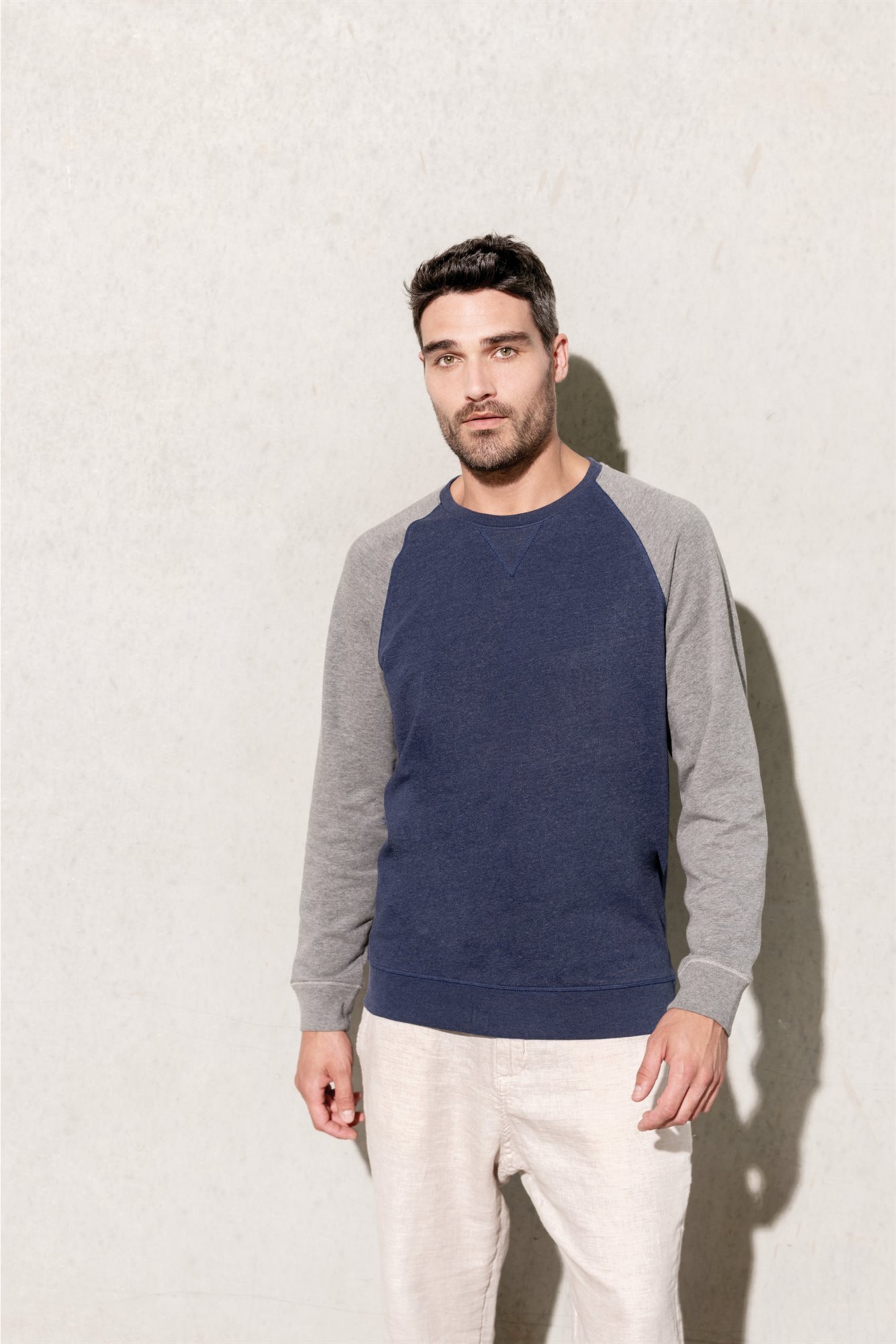 80% cotone / 20% poliestere. Realizzato con l'80% di cotone biologico. La certificazione OCS Blended (Organic Content standard) è rilasciata da Ecocert Greenlife. Felpa non garzata (French Terry). LST (Low Shrinkage Terry). Collo, polsini e fondo capo a costine. Nastrino di rinforzo a motivo spigato nel colletto e applicazione a V sul davanti del collo. Nessuna etichetta con il nome della marca sul collo; solo una piccola etichetta con l'indicazione della taglia per semplificare la personalizzazione.
