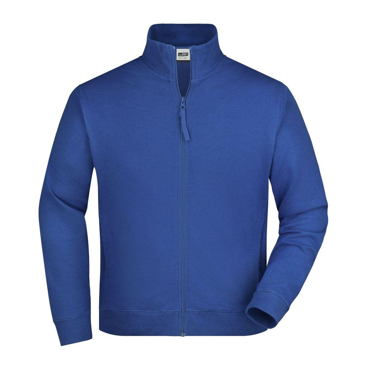 Giacca classica in french terry, French terry di alta qualità, lato interno non ruvido, Bordino con elastan, necktape, Cuciture doppie sullo scollo rotondo, sulle maniche e sul bordino. Due tasche, Tessuto esterno (300 g/m²): 100% cotone, Manica lunga, Cerniera, Colletto alla coreana