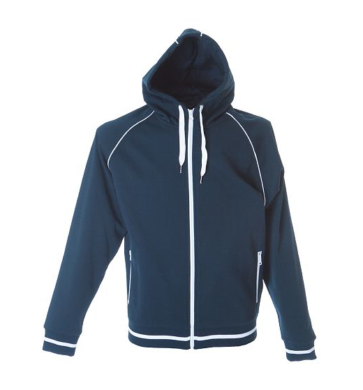 Felpa cotone – polyestere, Tessuto sportive “DRY” con trattamento antiacqua, Cappuccio foderato con cordini in contrasto, Zip lunga nastrata, Maniche raglan, Due tasche con zip nastrate, Profili in contrasto su cappuccio e spalle, Nastro di rinforzo bicolore nel collo, Polsini e fondo maglia in costina elasticizzata (con riga in contrasto nel Man e nel Boy) Peso: 320 g/m²