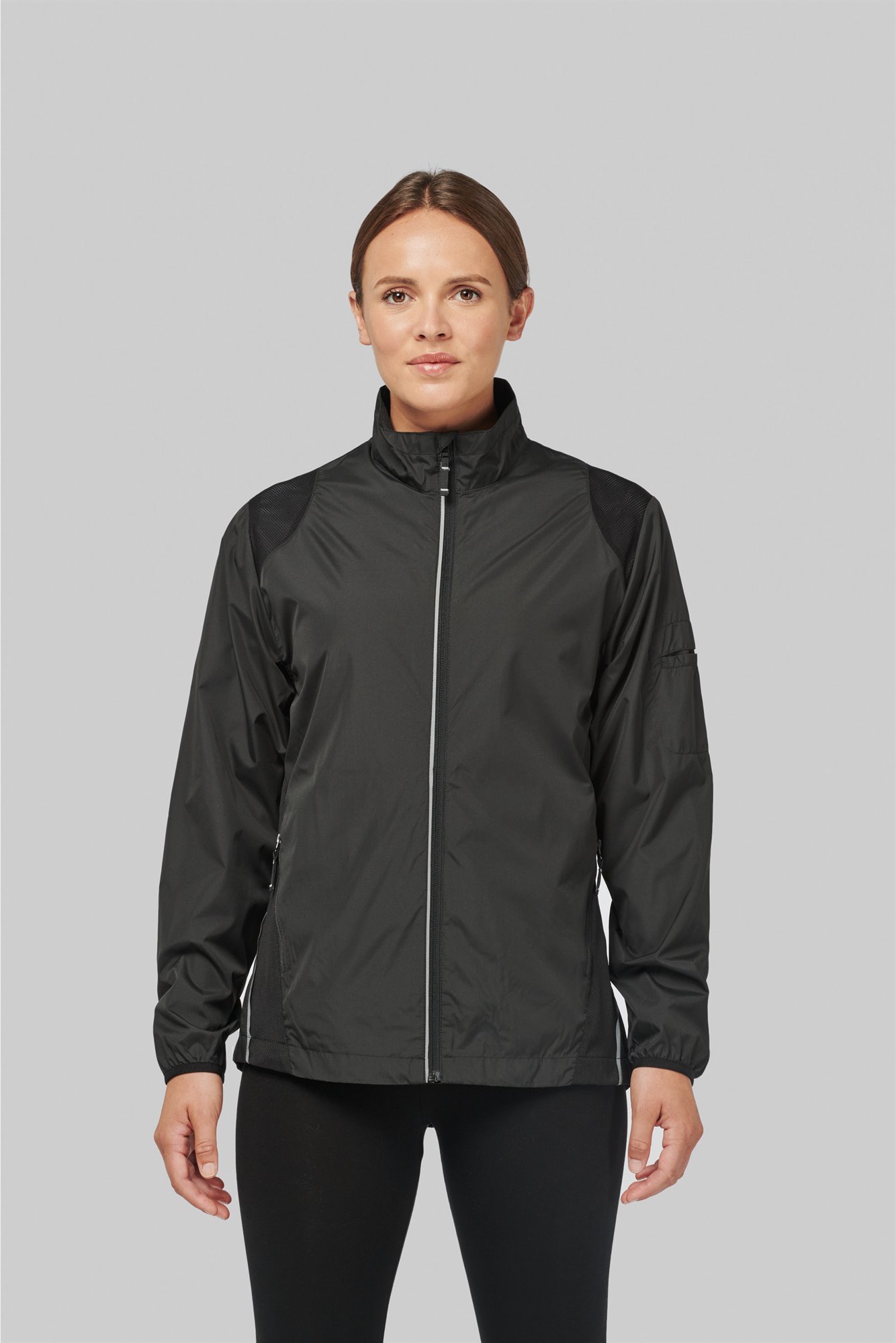 100% Microfibra di Poliestere. 2 tasche anteriori con zip. Applicazioni in rete su spalle e fianchi per controllo dell'umidità. Bande rifrangenti laterali e zip anteriore. Taschino sulla manica. Polsini elasticizzati.