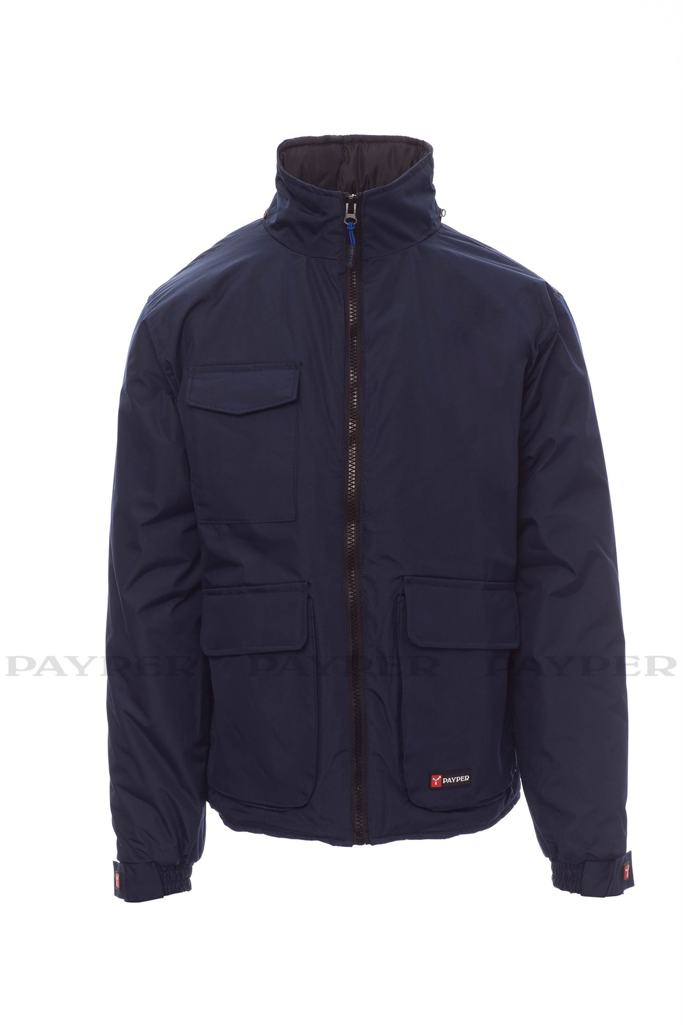 Giubbotto unisex, zip 8mm in plastica con cursore in metallo, cappuccio richiudibile nel colletto, elastico e stringi polsi, due ampie tasche frontali LOCK-SYSTEM, due tasche laterali, porta cellulare al petto. Interno: imbottito, zip per agevolare stampe e ricami.