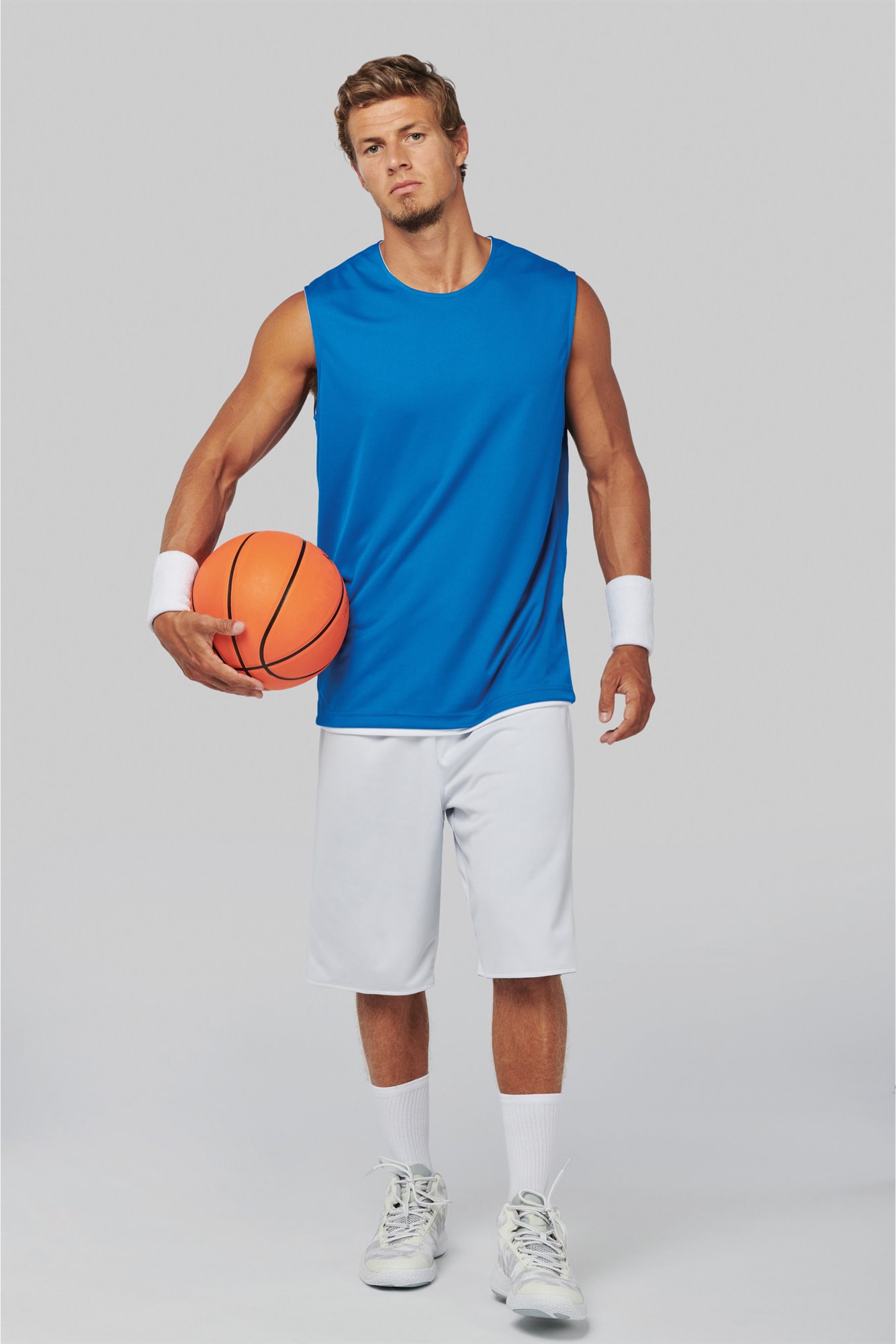 100% Poliestere. Reversibile e unisex. 2 strati di tessuto cuciti di 150 g/m2. Fascia elastica in vita con coulisse.