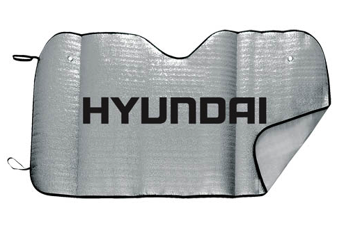 Parasole in alluminio su un lato in colore argento con finitura metallizzata e bordatura in poliestere nero. Dimensioni 130x70cm e schiuma sul retro. Nastri elastici pieghevoli con anelli di rinforzo in metallo, due ventose per la regolazione.