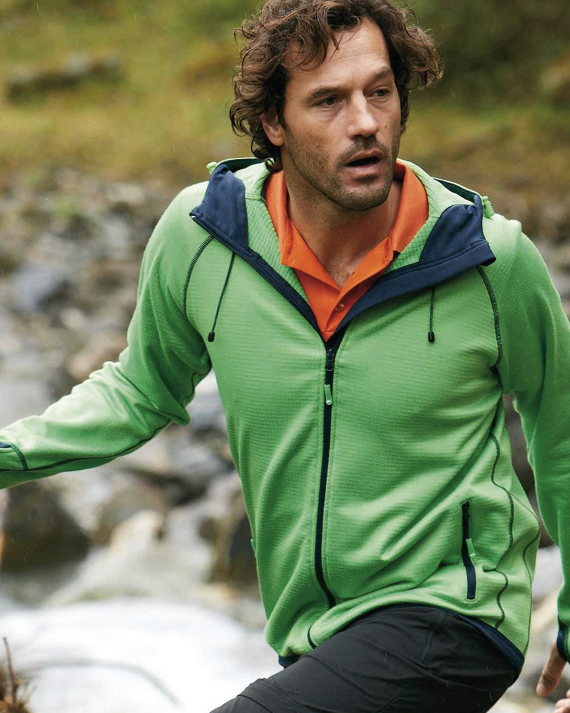 92% poliestere, 8% elastan. Giacca in pile con cappuccio Piacevole morbidezza e di facile manutenzione. All'esterno liscio con discreta stampa allover, all'interno pile felpato con motivo a rombi. Lunga zip frontale ricoperta con protezione per il mento, Cappuccio con cordino elastico e stopper, 2 tasche laterali con zip, Cuciture piatte a contrasto, anello per pollice. Tessuto esterno (280 g/m²).