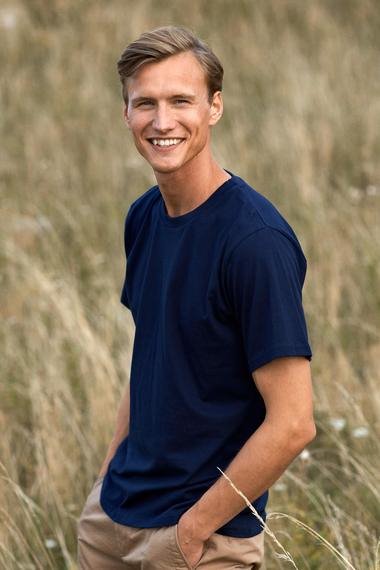 T-shirt in single jersey con scollo tondo, maniche corte e fettuccia all'interno del collo. Spalle leggermente scese e dalla forma casual per adattarsi sia agli uomini che alle donne. Qualità morbida e leggera, realizzata in cotone pettinato filato ad anelli da 155 g/mq.