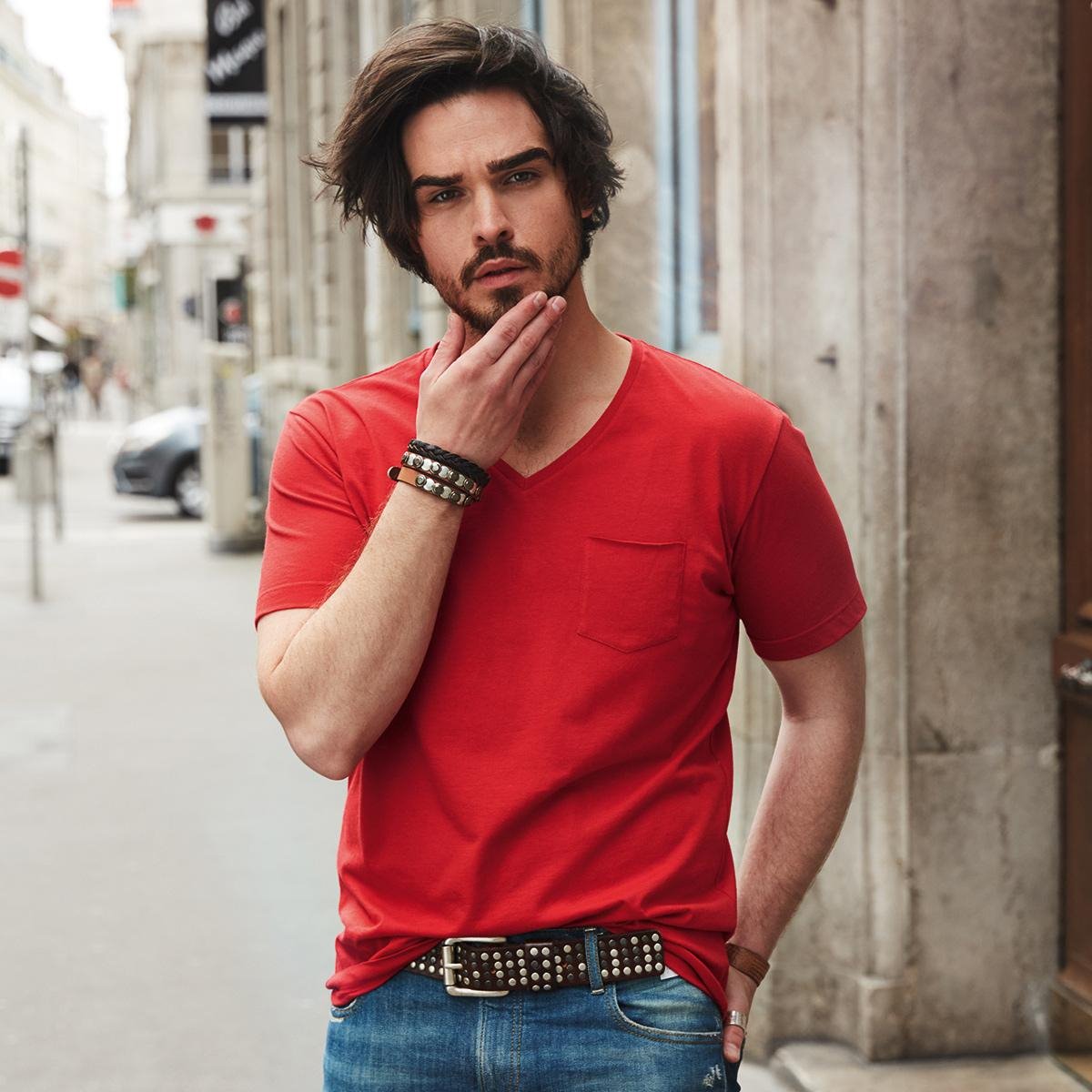 100% cotone organico, single jersey. T-shirt manica corta set-in, scollo a V con bordino stretto, giromaniche con elastane. Taschino al petto con orlo arrotolato, etichetta strappabile, struttura con cuciture laterali.