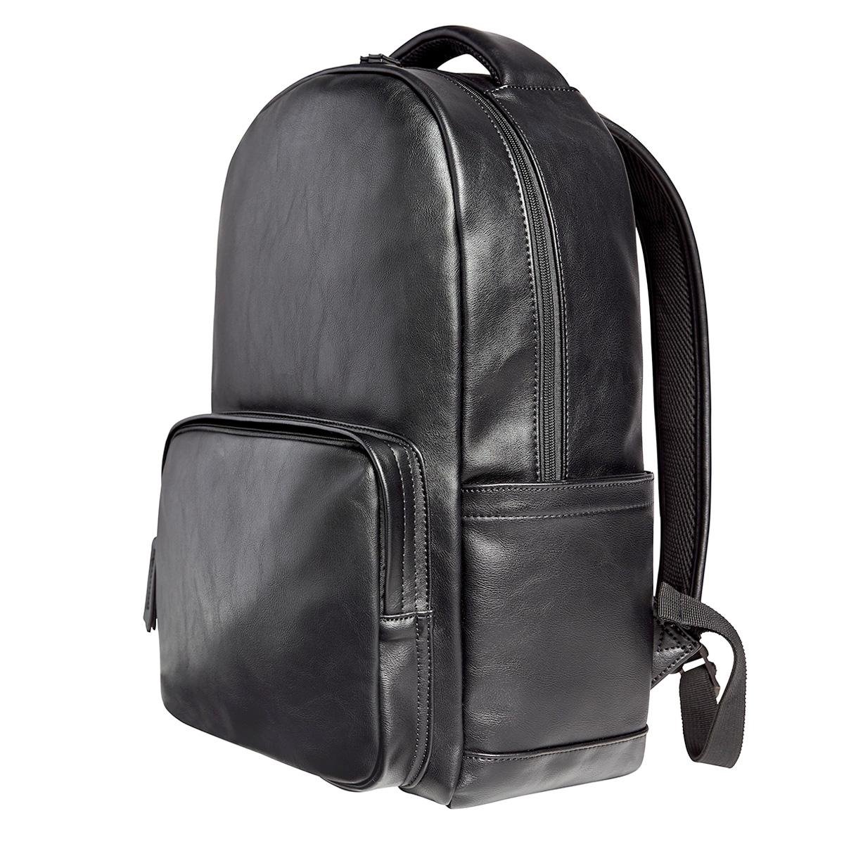 100% pelle sintetica. Zaino classico con tasca anteriore, tasche a inserto piatte laterali, scomparto per notebook, retro e fondo rinforzati, spallaccio imbottito di lunghezza regolabile. Area di stampa sulla tasca frontale W 17 x H 14 cm, sul fronte W 12 x H 12 cm. Dimensioni: 29 x 43 x 15 cm.